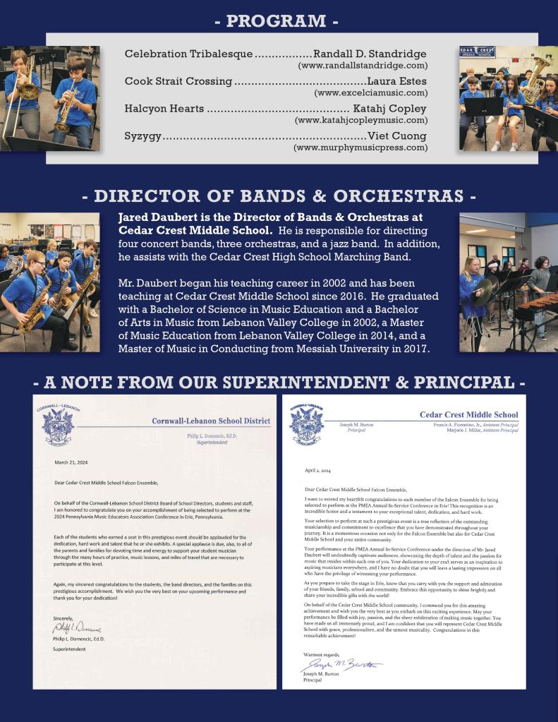 Falcon Ensemble at the 2024 Pennsylvania Music Educators Association Annual Inservice Conference in Erie, PA