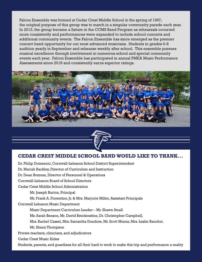 Falcon Ensemble at Elizabethtown College & Hersheypark – Another Superior Rating!